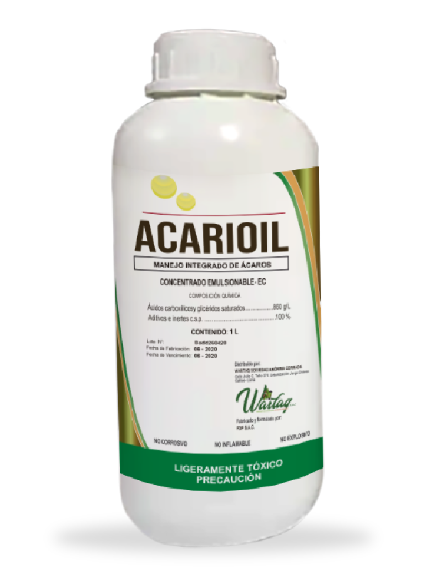 Es un producto para el manejo integrado de ácaros, que impide que el intercambio de oxígeno del arácnido con su medio, al taponar los espiráculos, potenciando la acción del producto comercial y contra algunos insectos como moscas blancas, minadores y trips actúa como disuasor de la ovoposición y de la alimentación.